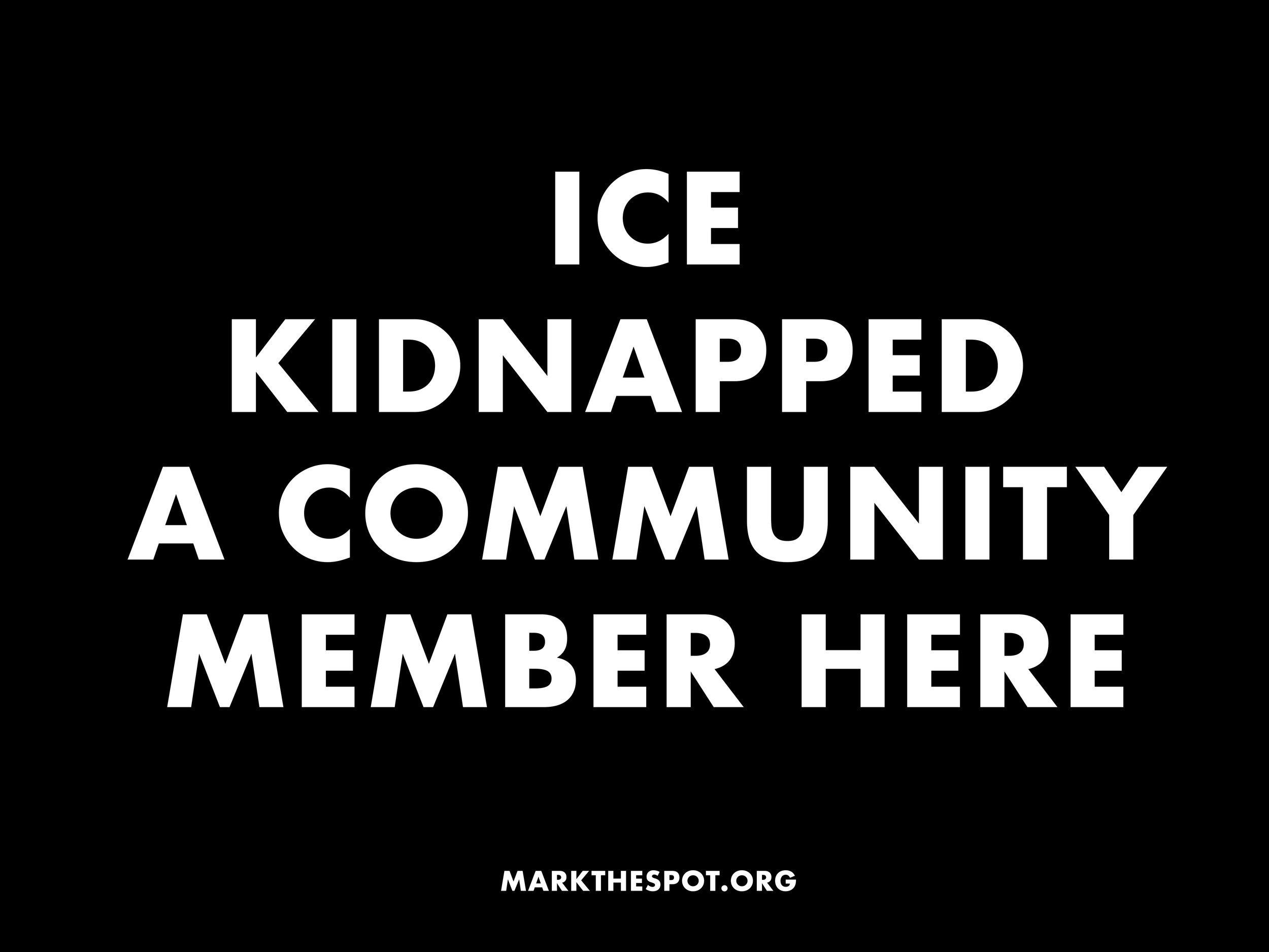 We place physical signs in public space to document where ICE has detained or taken community members. Each sign marks a location where democratic protections failed and where neighbors deserve to know what happened in their own communities.